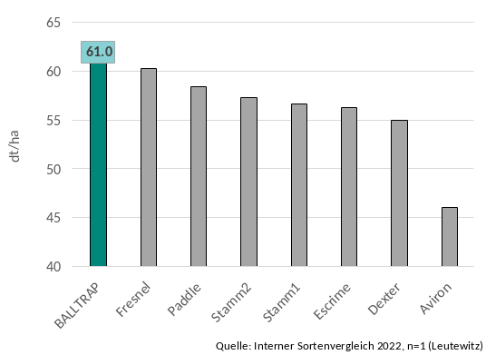 Balltrap ist eine halbblattloser, weißer Sortentyp . Sie zeichnet sich durch exzellente Winterhärte aus und überzeugt mit einem hohen Ertragspotential bei gleichzeitig früher Reife